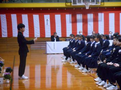 写真中:在校生代表「送ることば」