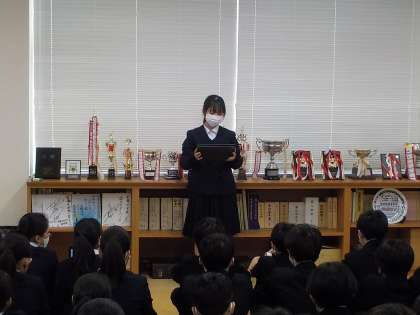 最初に、学年生徒会から各クラスの振り返りを行いました。