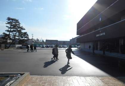 うっすらと雪が積もっていて、とても寒く感じますが、太陽がまぶしいくらいのよく晴れた朝です。