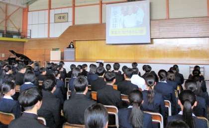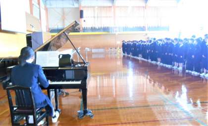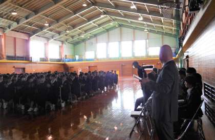 始業式では、校長先生の式辞の後、学校全体や学年、クラス、部活動の担当教職員の発表があり、最後に全員で大きな声で校歌を歌いました。