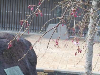 前庭のしだれ桜のつぼみがどんどん赤く膨らんできました。