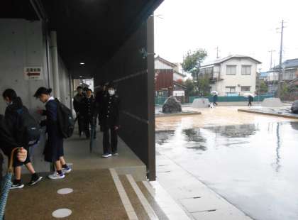 玄関で先生方が登校した生徒たちに声をかけ、温かく出迎えていました。