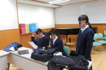 明日の部活動紹介のリハーサルに向けて打合せをしています。