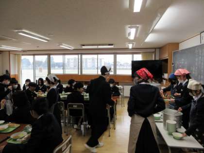 2回目の給食ですが、給食当番が手際よく用意し、素速く食事の時間になりました。