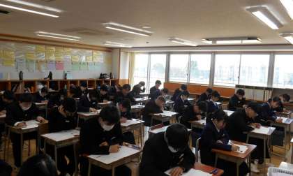 2年生は、中教研学力調査1日目の英語・国語・理科の3教科に臨みました。