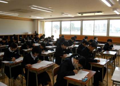 1年生は、市学力調査1日目の国語・理科・数学の3教科に臨みました。
