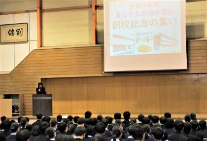 創校当時の様子や昔の校舎から今の校舎までの変遷などの様子を、写真で紹介しながら、学校の歴史を振り返りました。