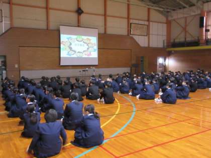 学級目標や学年目標は、どのような思いが込められているかを学級代表や学年代表が説明をしました。
