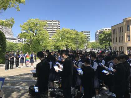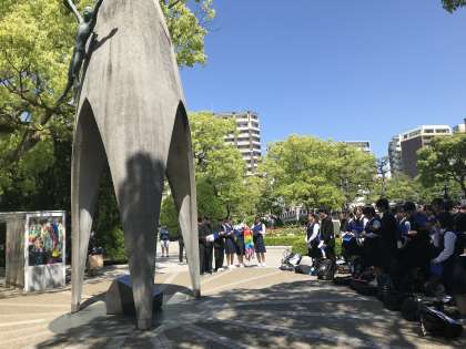 平和記念資料館を見学した後、平和セレモニーを行いました。