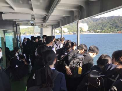 フェリーに乗って宮島に向かいました。