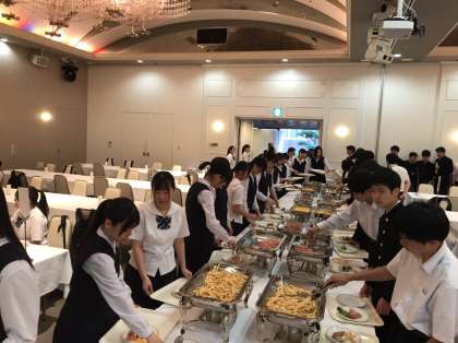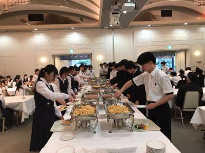 健康観察、みんなで朝のあいさつをしてから、バイキングの朝食をいただきました。