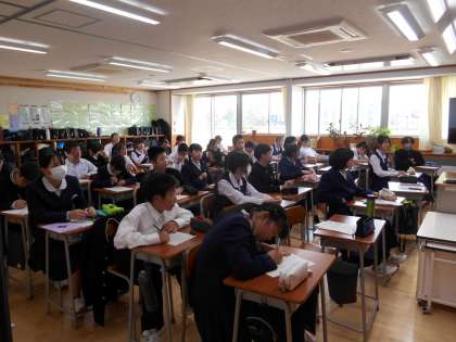 今年の元旦に起きた地震での体験もみんなで想起しながら、防災担当の先生から、いざという時に備えて自分の身を守るための行動について、大事なお話がありました。