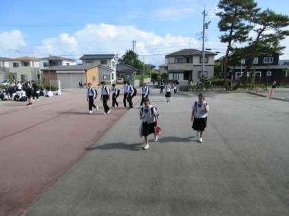 今日は午前中に、1年生が「岩瀬浜清掃」に出かけます。