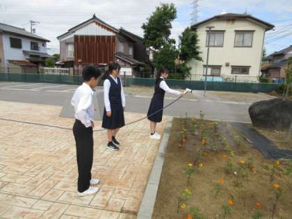 環境委員の生徒たちが花壇の水やりを行っていました。