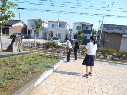 環境委員の生徒たちも花壇の水やりを行っています。