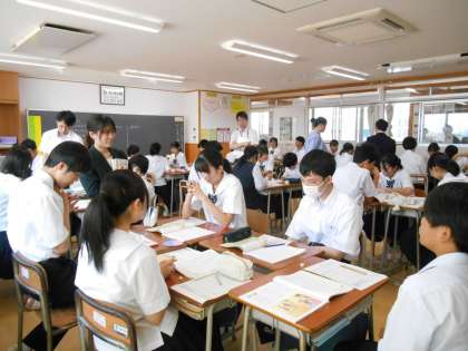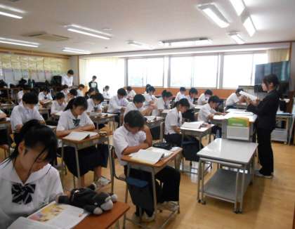 3限に音楽の教育実習生が2年4組で、道徳の研究授業を行いました。