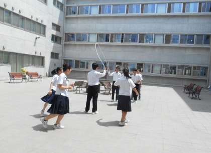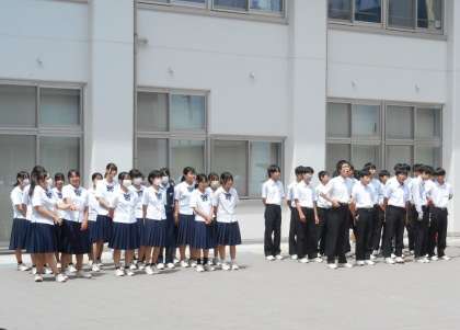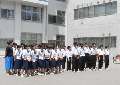 昼休みに、生徒会執行部主催の「岩中三輪ピック」の「校歌部門」が行われました。朝、降っていた雨もあがり、無事に「いわせテラス」で実施することができました。今日は、2年生の2クラスです。