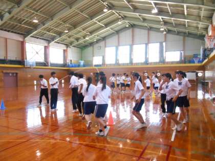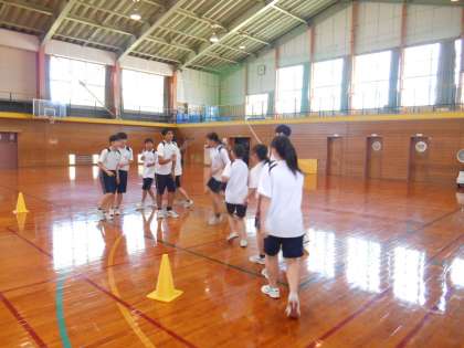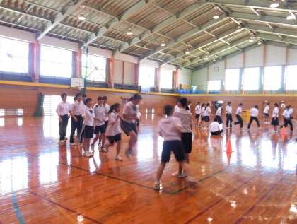 昼休みに、生徒会執行部主催の「岩中三輪ピック」の「運動部門」が体育館で行われました。