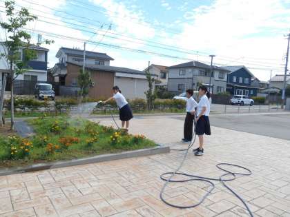 用務員さんも環境委員の生徒たちの活動を見守ってくださっています。