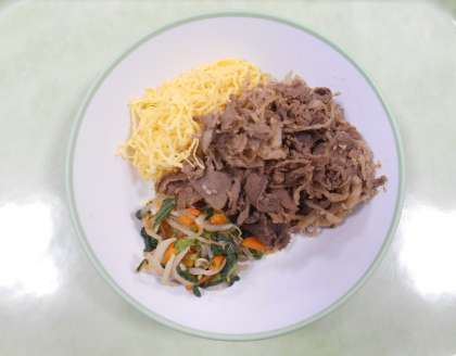 焼肉、ナムル、錦糸卵をごはんと混ぜながら、とてもおいしくいただきました。