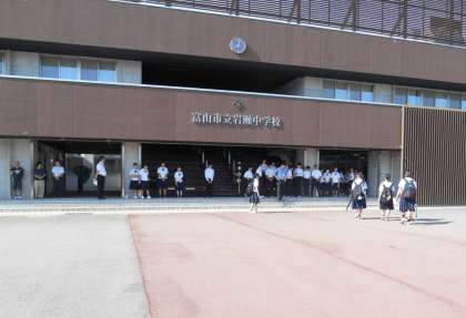 今朝は、1年4組のみなさんが元気にあいさつ運動を行っていました。