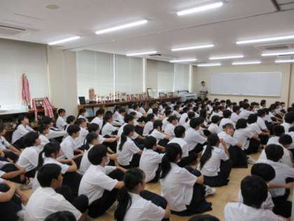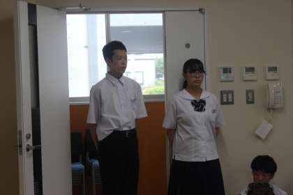 1年生は、5限の学活の時間に、体育大会実行委員と団リーダーに選ばれた生徒たちの発表を行いました。