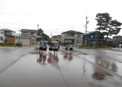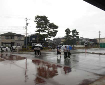 今朝は、昨日よりも雨の降りが激しい中の登校となりました。