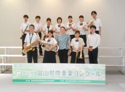 吹奏楽部 富山県吹奏楽コンクール 公開日 2024/07/21 更新日 2024/07/21 今日の岩瀬中 7月21日(日) 吹奏楽部は、新川文化ホールで開催された富山県吹奏楽コンクールに出場しました。 今回が初めてのA部門での挑戦でしたが、これまでの練習の成果を発揮し、岩瀬中学校吹奏楽部らしいのびのびとした演奏をすることができました。 自由曲の「蒼き海と船乗り」は、海の情景が浮かんでくるようなステキな演奏でした。 応援、ありがとうございました。