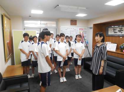 放課後に、北信越大会に出場する水泳部、陸上競技部と部活動以外で北信越大会、全国大会に出場する選手たちの激励会を行いました。