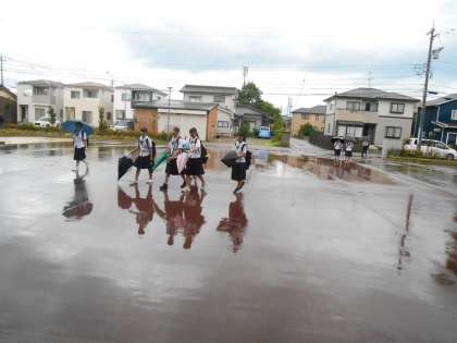 生徒たちが登校している途中から、雨はあがってきました。