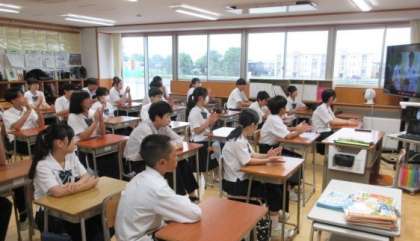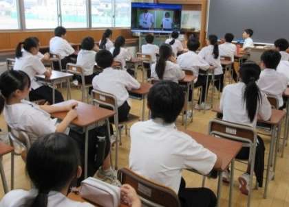 終業式をリモートで行ったので、生徒たちは教室で式に参加しました。