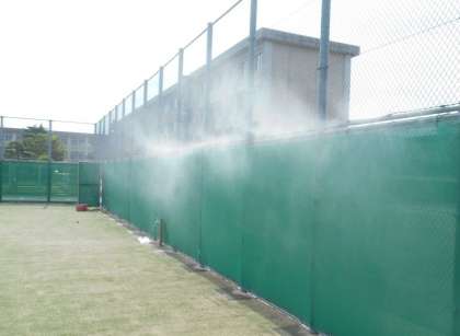 テニスコートに水を霧状で出すミストシャワーが設置されました。