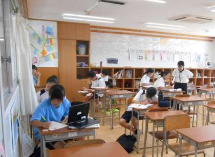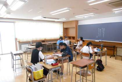 積極的に先生に質問しながら、夏休みの課題を進めています。