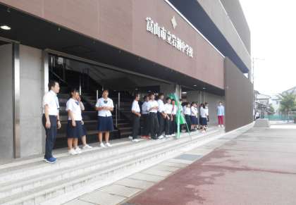 今朝は、2年4組のみなさんが元気にあいさつ運動を行っていました。