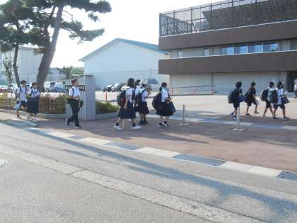 駅伝部の生徒たちもスポーツ公園での練習を終えて、登校してきました。