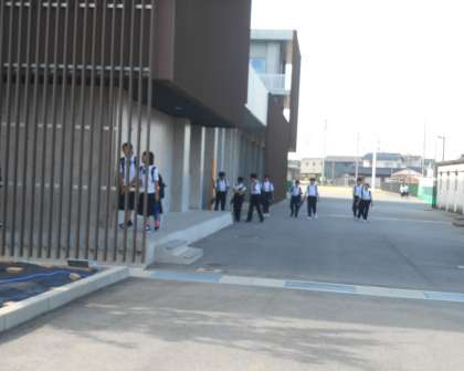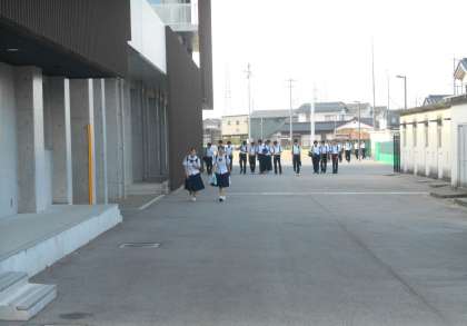 環境委員の生徒たちが今朝の花壇の水やりを行っています。