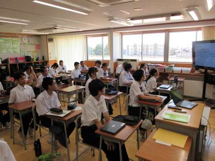 金沢校外学習に向けて、学年生徒会から目標やルールづくりについて、説明がありました。その後、各クラスで校外学習の目標を考えたり、スローガンアンケートに答えたりしました。