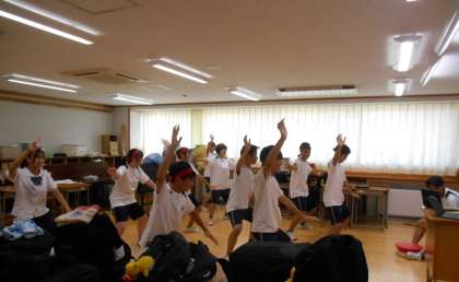 3年生が1・2年生のリーダーに団演技を教えたり、確認をしたりしています。