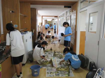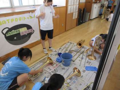 引退式を行う前に、部員全員で今使っている楽器の手入れを行いました。