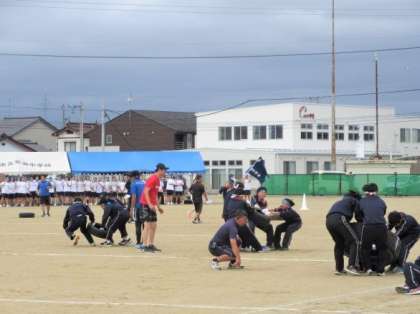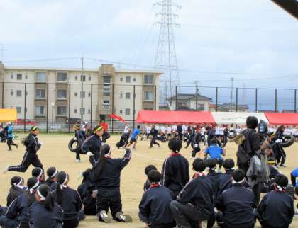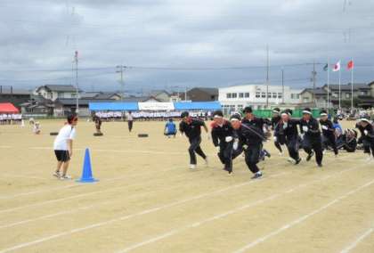 3年生の学年種目「伊波世野の呼吸 最終奥義「車輪引き」〜今年の主役はオレだ!〜」の様子です。