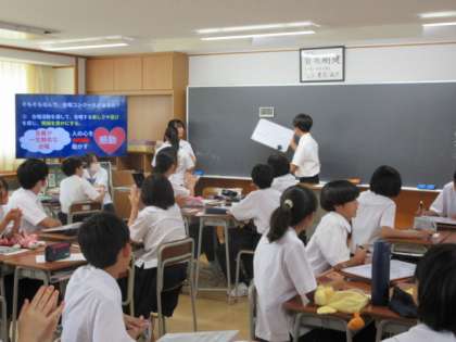 1年生は2限目に、合唱コンクール実行委員が中心となって、各クラスの合唱目標を決めました。