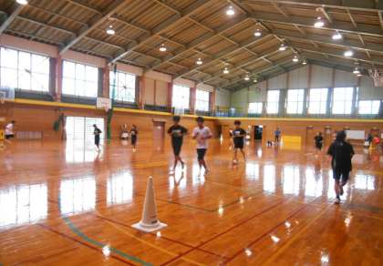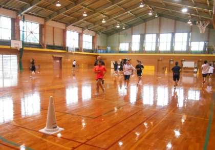 駅伝部は、今朝は雨が降っていたので、体育館でトレーニングを行っていました。