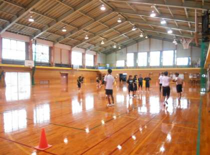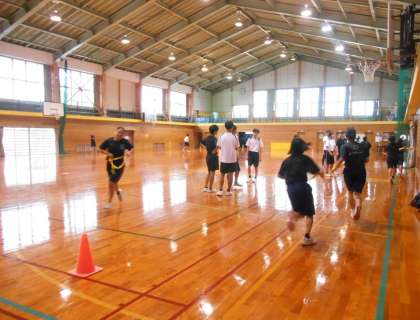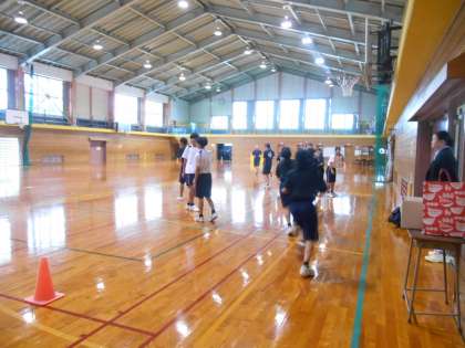 駅伝部は、今朝も雨が降っていたので、体育館でトレーニングを行っていました。