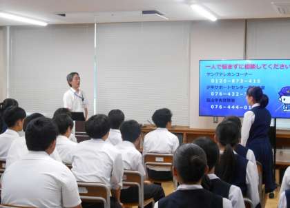 3年生は、5・6限に少年サポートセンターの方を講師にお招きし、「薬物乱用防止教室」を行いました。