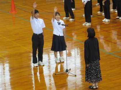 写真中:生徒会長から激励のことば