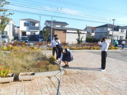 今朝も、3年生の環境委員が協力して花壇の水やりを行っていました。