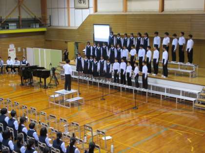 1年2組の合唱「My Own Road−僕が創る明日−」の様子です。