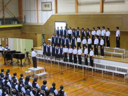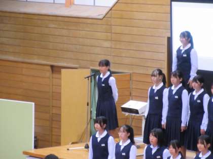 1年3組の合唱「旅立ちの時〜Asian Dream Song〜」の様子です。