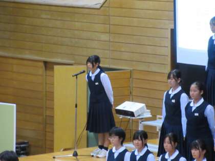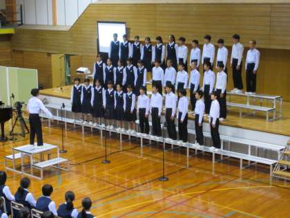 2年1組の合唱「あなたへ−旅立ちに寄せるメッセージ」の様子です。