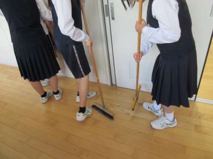 テストの日でも、学校をきれいにします。